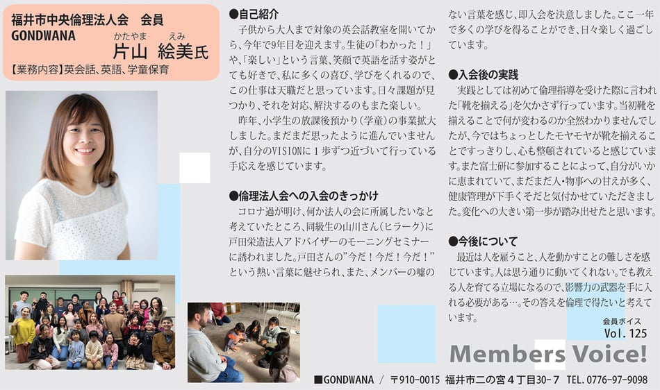 vol.117 入会後、ありがとうや挨拶、ゴミ拾いなど小さな実践を続けてます。