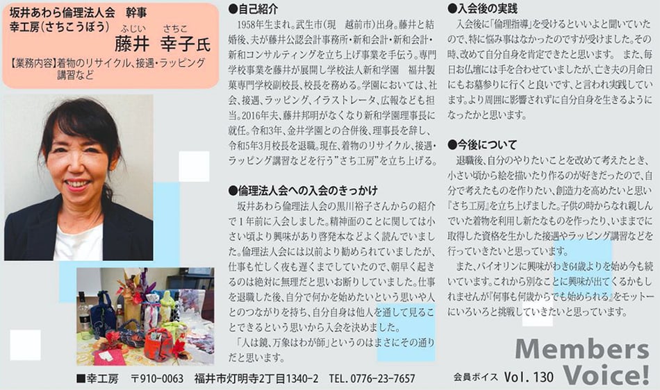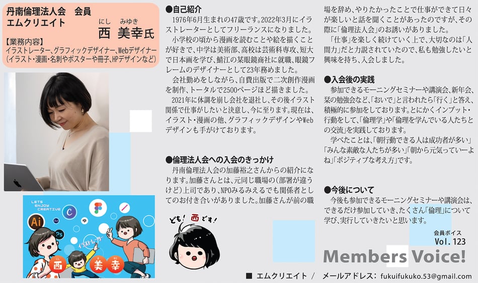 vol.109 倫理に出会い、見方を変えることができるようになり、毎日しあわせだなぁと思えるようになりました。