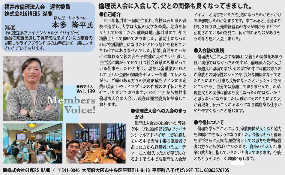 vol.141 純粋倫理の実践を通して会社経営者 家庭人として成長していきたい!